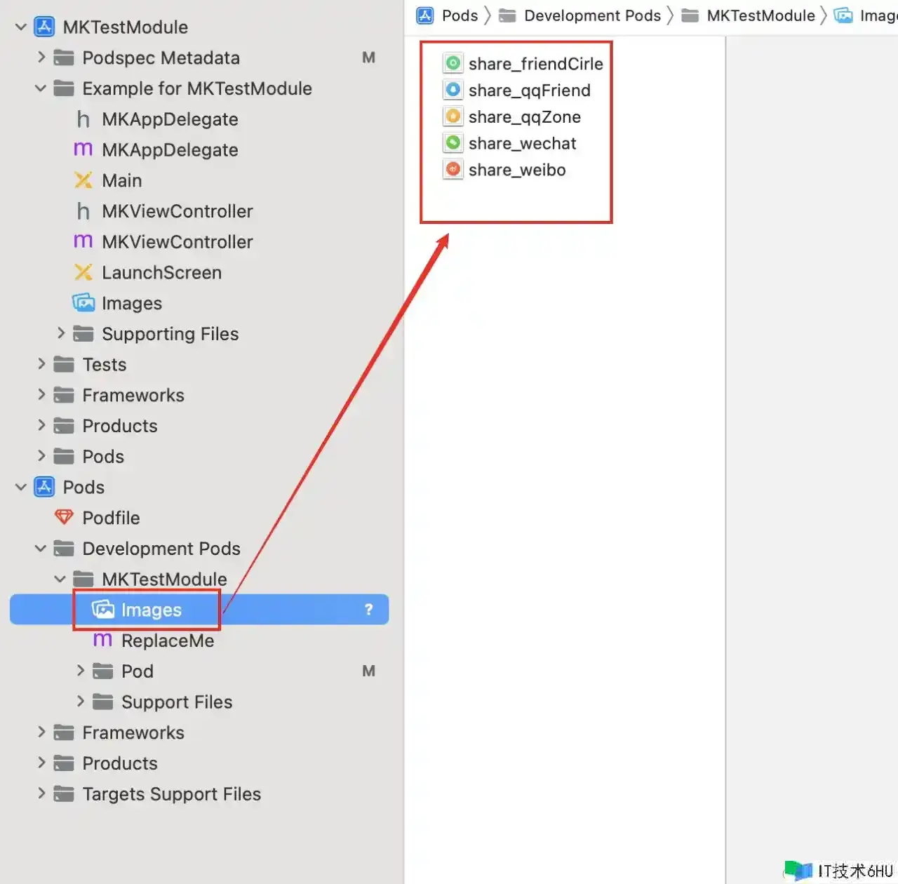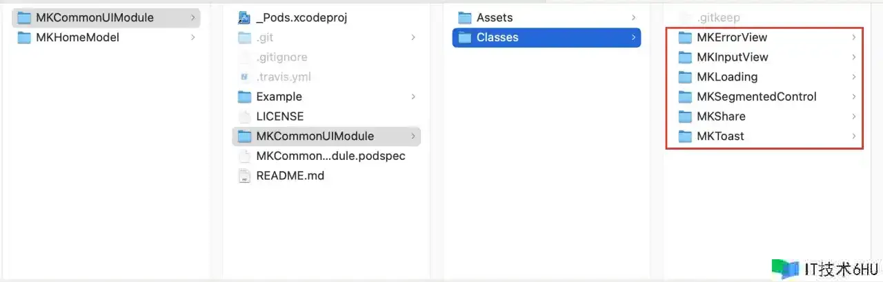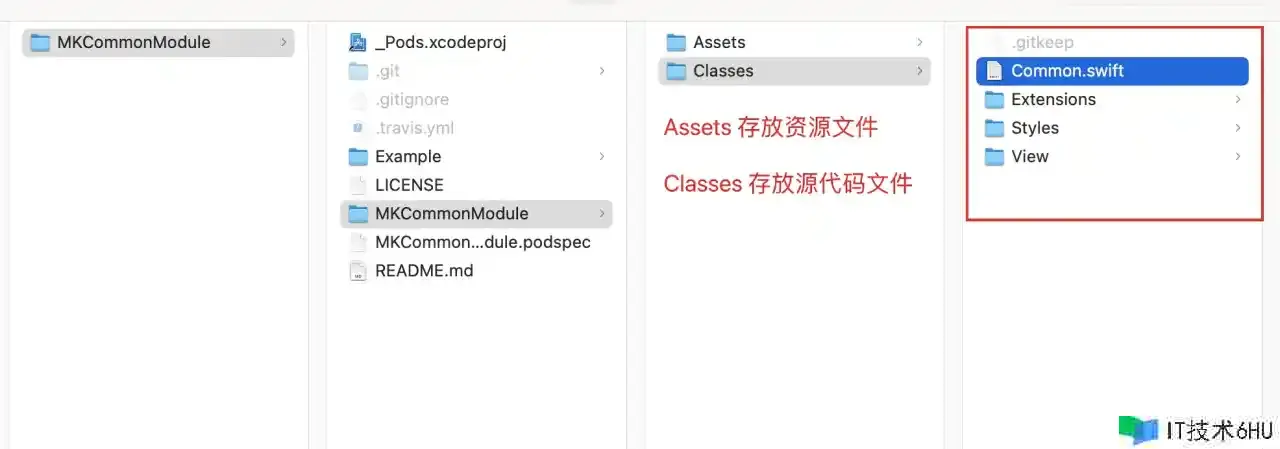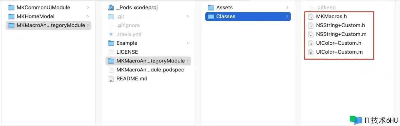 接下来咱们将写好的源代码文件放到 <Module>/<Module>/<Classes> 目录下,如图所示: