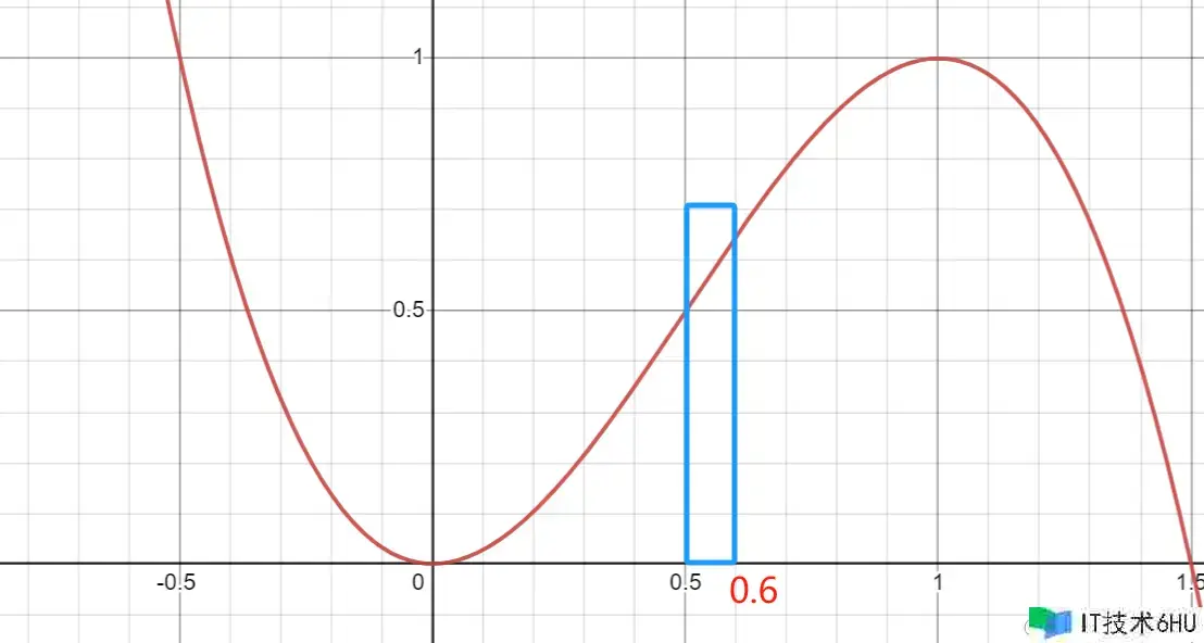 也便是说过渡区域内输入的值,将被以如下的曲线转化输出:比如上面第一个事例区域在 [0.5,0.6],过渡时符合蓝框区域的曲线: