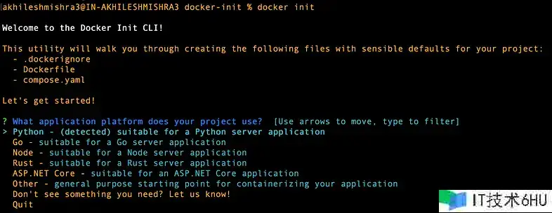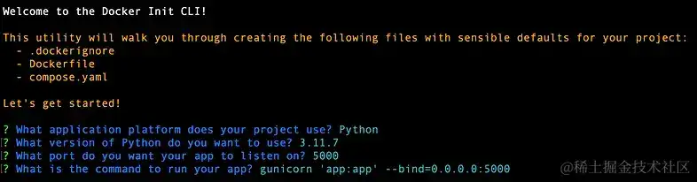 docker init 将扫描您的项目并要求您确认并挑选最适合您的应用程序的模板。挑选模板后,docker init 会要求您供给一些特定于项目的信息,主动为您的项目生成必要的 Docker 资源。