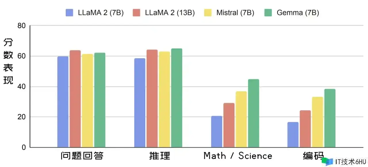 由于 Gemma 体积小,因此能够直接在用户的笔记本电脑上运转。下图显示了 Gemma(7B)的言语理解和生成性能与 LLaMA 2 (7B)、LLaMA 2(13B) 和 Mistral(7B)等类似巨细的敞开模型的比较。
