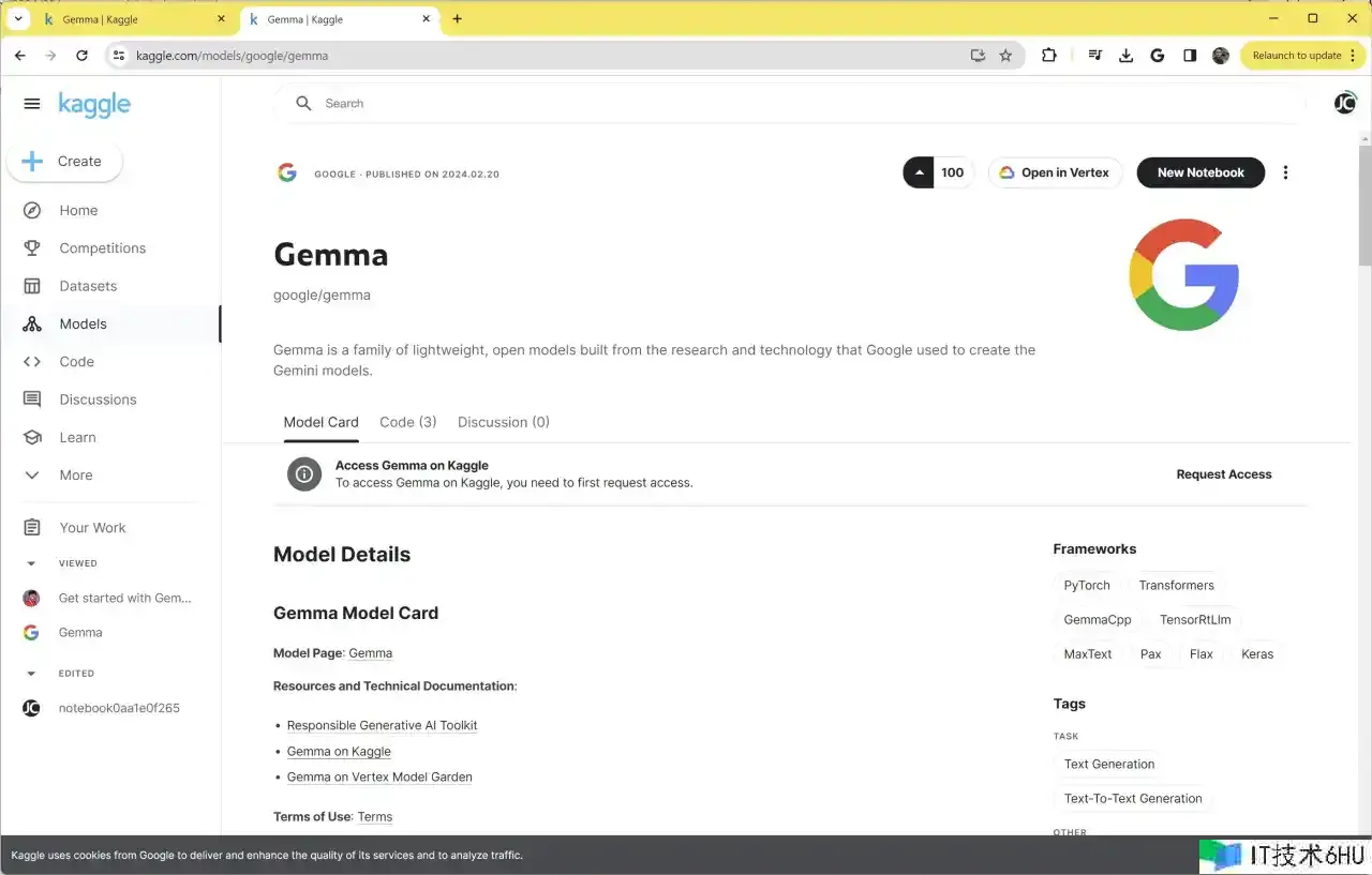 Gemma 模型能够从 Kaggle Models 下载运转。