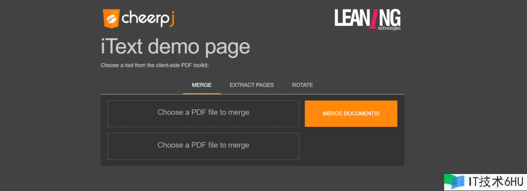 设置CheerpJ 3.0相当简略,文档中有明晰的步骤概述,且与绝大多数浏览器兼容,该公司称。在游乐场方面,运用CheerpJ iText兼并PDF文件十分简略。用户只需将PDF文件输入API,点击几次鼠标,文件就在“浏览器中完结兼并”。您需要先拜访iText演示页面: