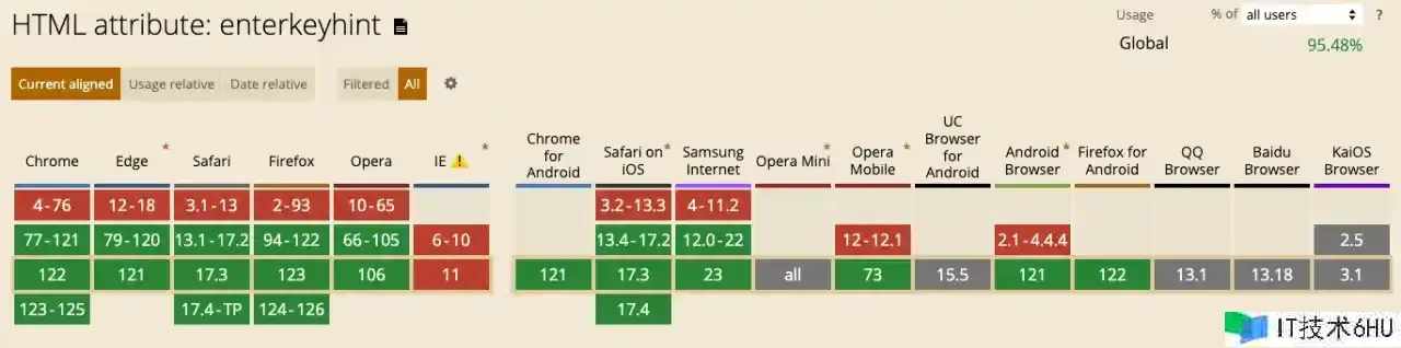 enterkeyhint特点的浏览器兼容性如下图所示: