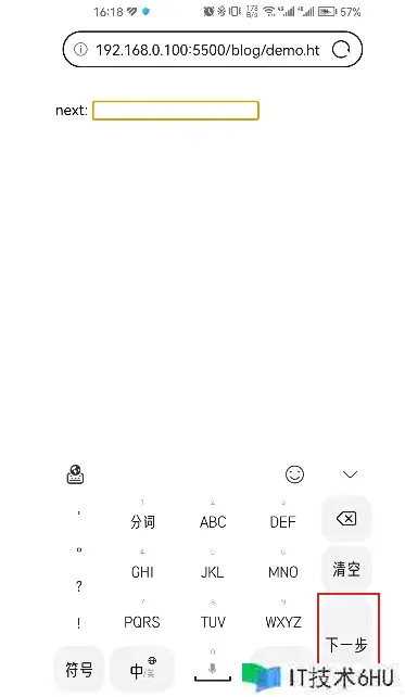 next:表明按下”Enter”键会切换到下一个输入字段。一般用于表单中的多个输入字段的切换。