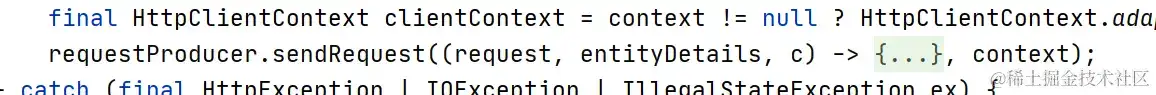public ClassicHttpResponse execute(ClassicHttpRequest request, ExecChain.Scope scope, ExecChain chain) throws IOException, HttpException {