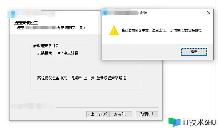 MessageBox MB_ICONEXCLAMATION|MB_OK "途径请勿包括中文,请点击“上一步”从头设置装置途径"