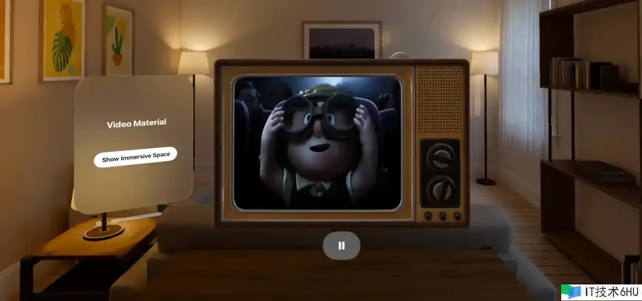 在 ImmersiveView 中从 Model 中获取到播映器,增加到视频原料上,并绑定到屏幕实体上。而且当实体加载完成后播映视频。