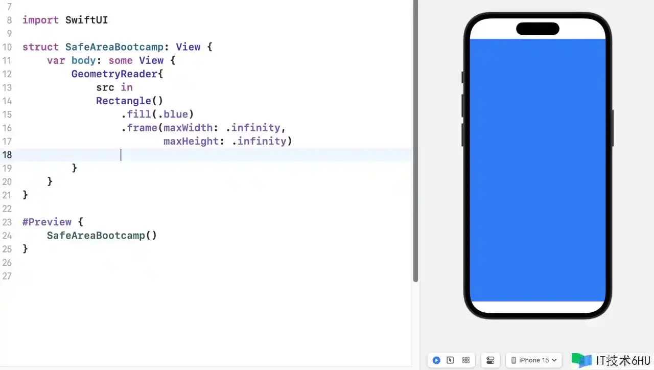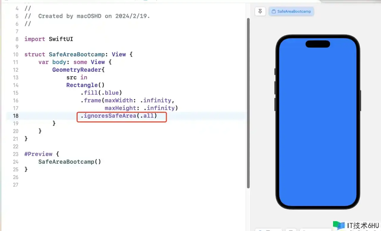 能够看到上下边距存在安全区域的,假如禁用安全区域,运用 ignoresSafeArea(.all) 能够去掉。