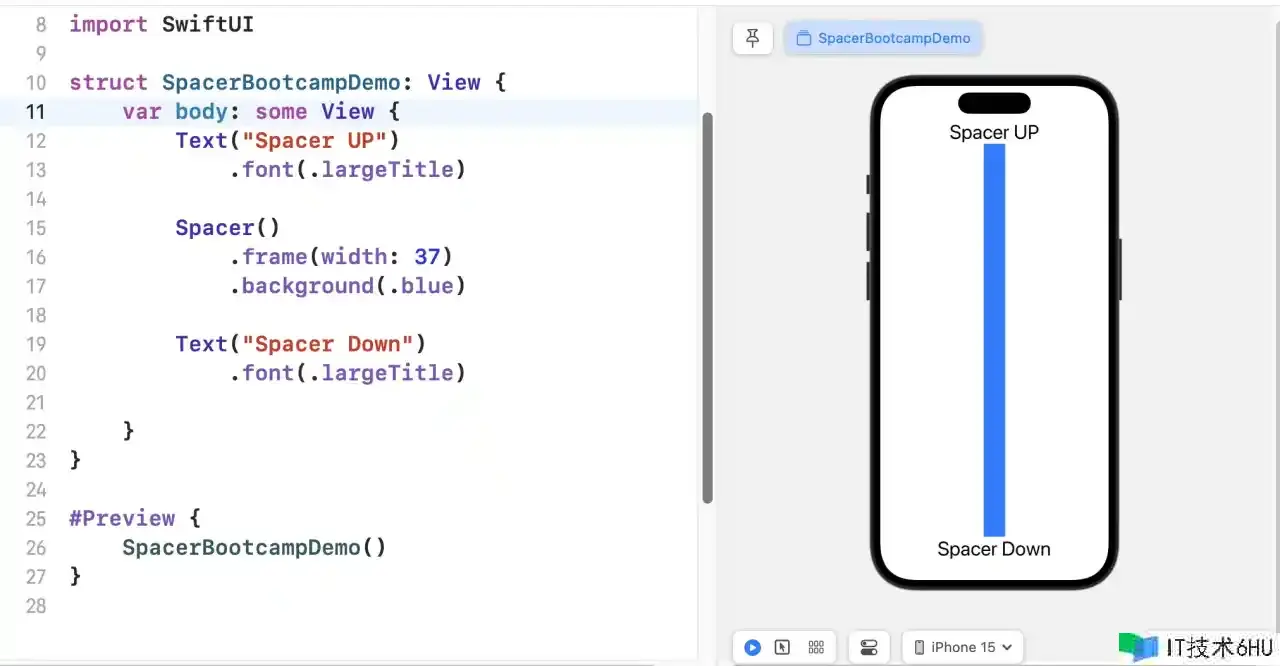 总结:Spacer 是一个灵敏的空间视图,它的首要作用是在布局中自动调整本身的高度和宽度,以填满特定的空间;简略来说,它便是一个垫片,调整本身视图的高度,假如它周围有其他视图,也会遭到Spacer影响。