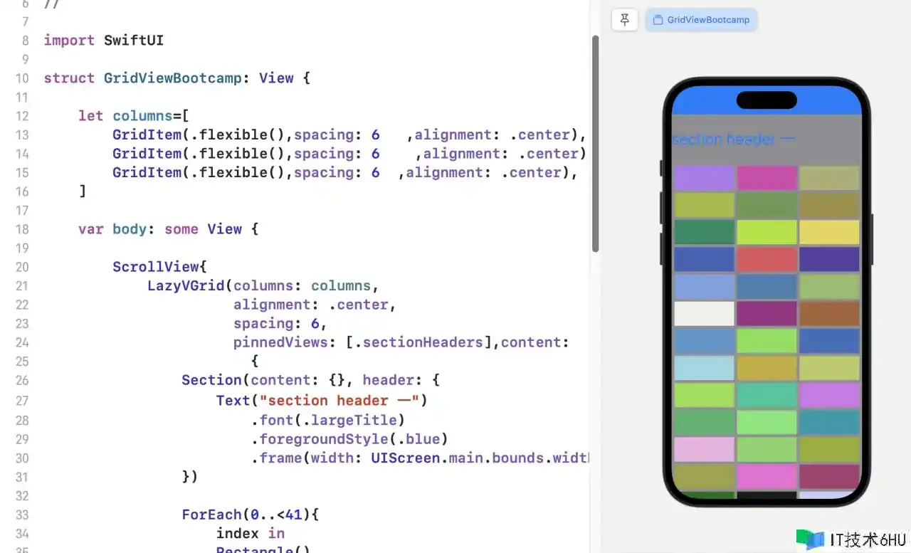 let columns=[ GridItem(.flexible(),spacing: 6 ,alignment: .center), GridItem(.flexible(),spacing: 6 ,alignment: .center), GridItem(.flexible(),spacing: 6 ,alignment: .center), ]
