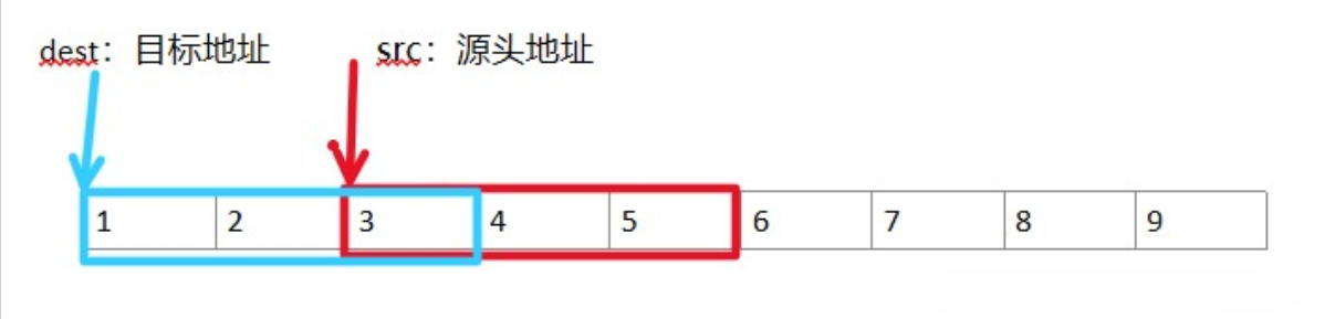 总结:假如dest字符串在src的字符左边,则从首元素仿制。假如dest字符串在src右边,则从结尾元素开端仿制。