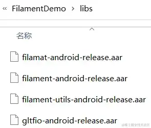 阐明:在项目根目录下的 libs 目录中,需求放入以下 aar 文件,它们源自Filament环境搭建中编译生成的 aar。