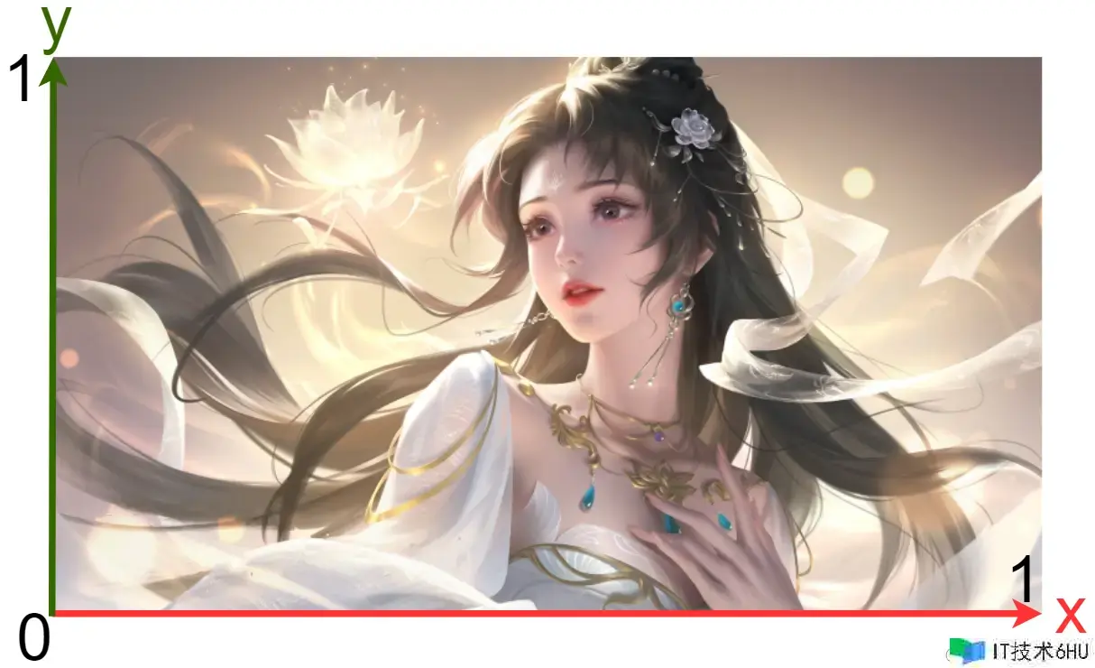 Filament 纹路坐标的 x、y 轴正方向别离朝右和朝上,其 y 轴正方向朝向与 OpenGL ES 和 libGDX 相反(详见【OpenGL ES】纹路贴图、【libGDX】Mesh纹路贴图),如下。