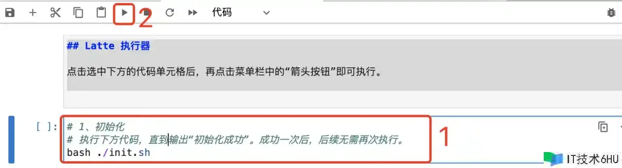 3、点击选中下方的代码单元格后,再点击菜单栏中的“箭头按钮”即可履行对应的生成使命。