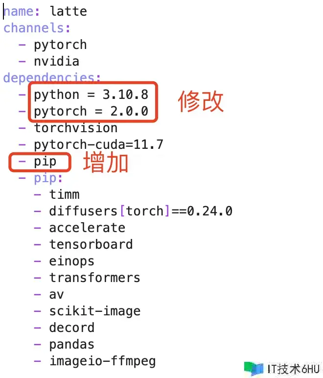 在Latte根目录中找到 environment.yml 文件,完好修正如下: