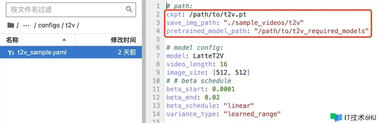 - pretrained_model_path:文本生成视频专用的一些模型,请修正“/path/to”为上一步下载模型的本地保存目录。