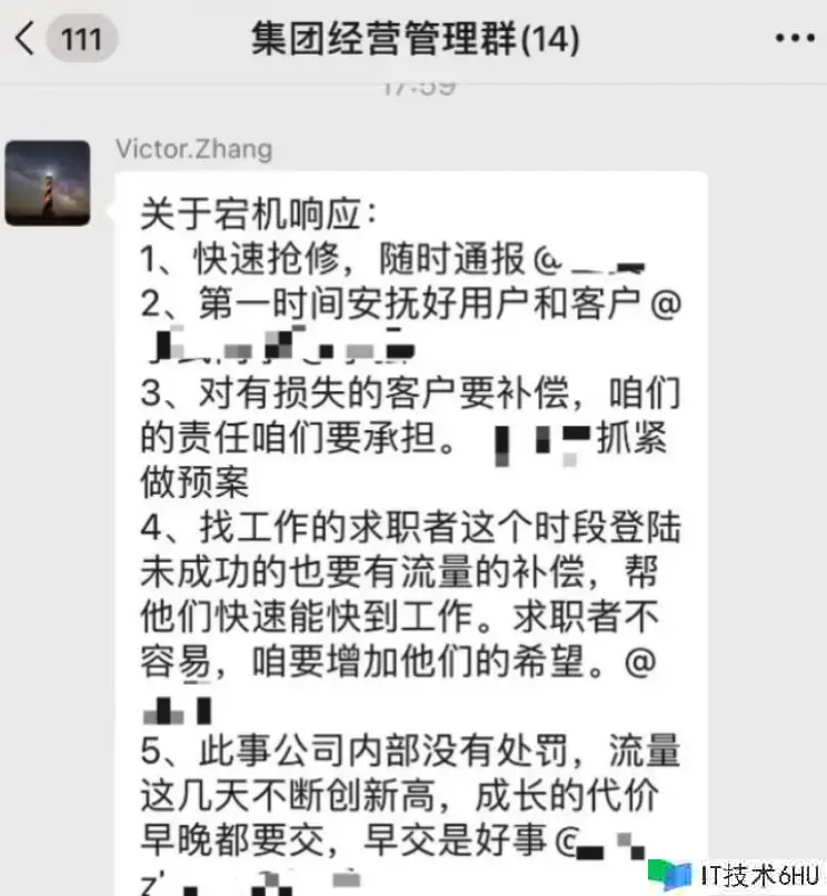 值得一提的是,张月佳在宕机响应部署中提到,集团不会对本次宕机事情相关人员作出处罚,他将本次危机视作智联招聘流量屡立异高下的一次“生长的代价”。