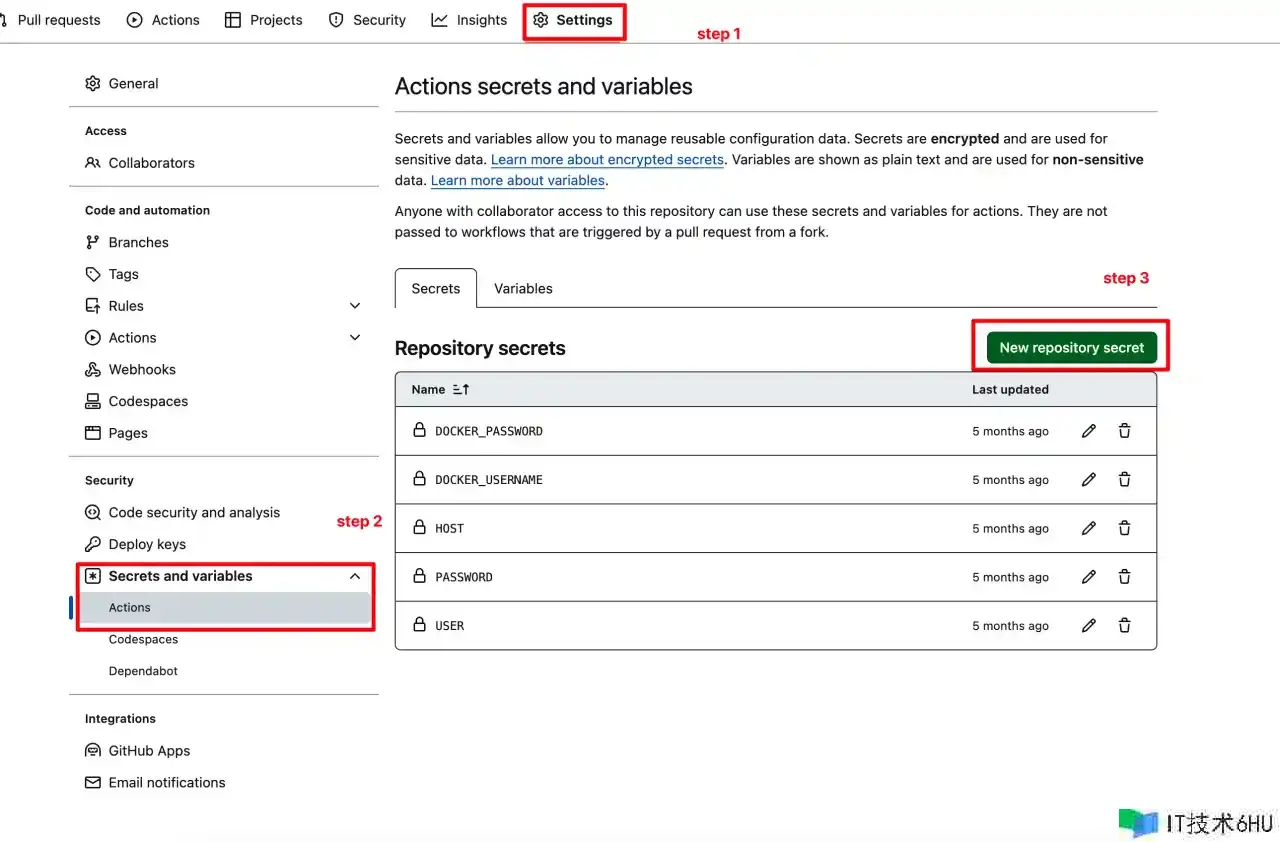 注意 ${{ secrets.XXX }} 是需要在github里装备的