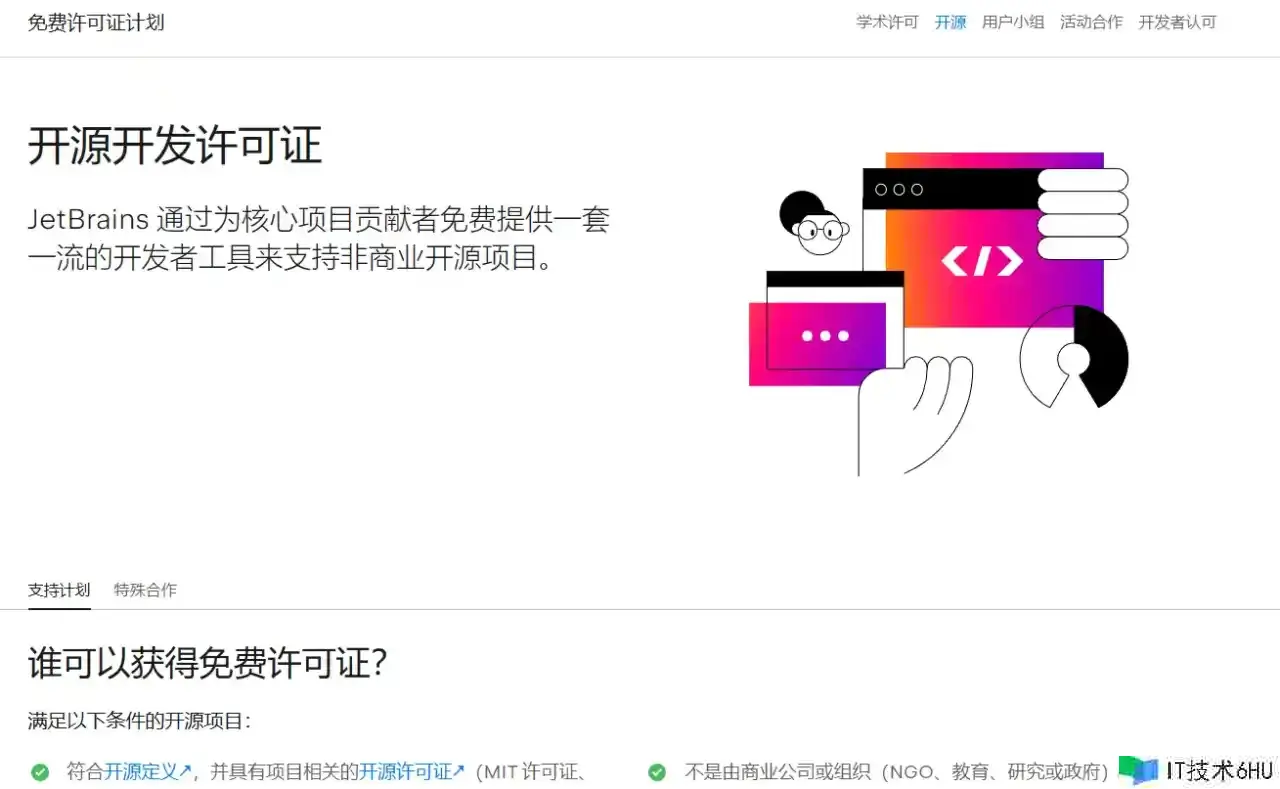 开源项目授权:假如你是某个开源项目的贡献者,你可能有资历请求免费的开源许可证。要求如下
