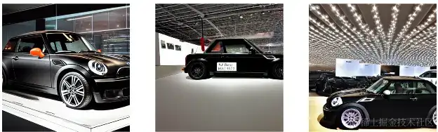 images = model.text_to_image( "There is a black BMW Mini at the exhibition where the lights focus", batch_size=3,)