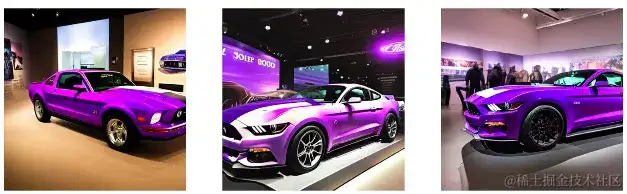 images = model.text_to_image( "There is a purple ford mustang at the exhibition where the lights focus", batch_size=3,)