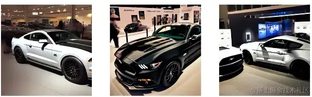images = model.text_to_image("There is a black ford mustang at the exhibition where the lights focus", batch_size=3, )