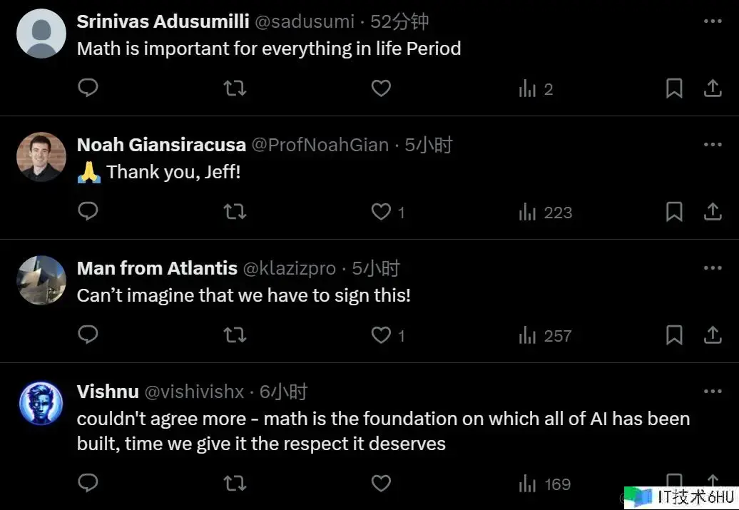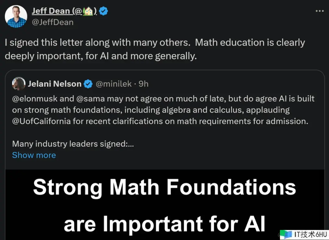 签署姓名的 Jeff Dean 发推表明,数学教育对 AI 以及更广泛的范畴明显都十分重要。