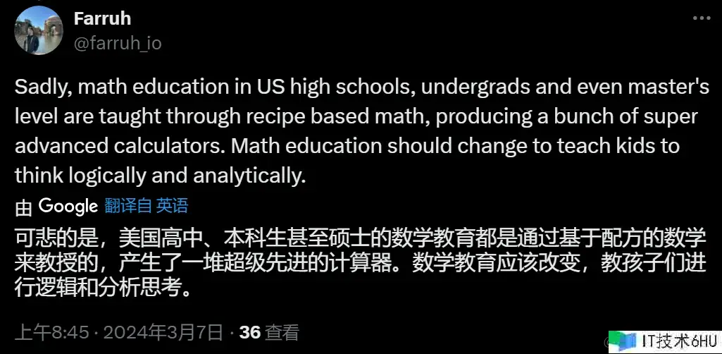 也有人表达了关于当前美国数学教育的不满: