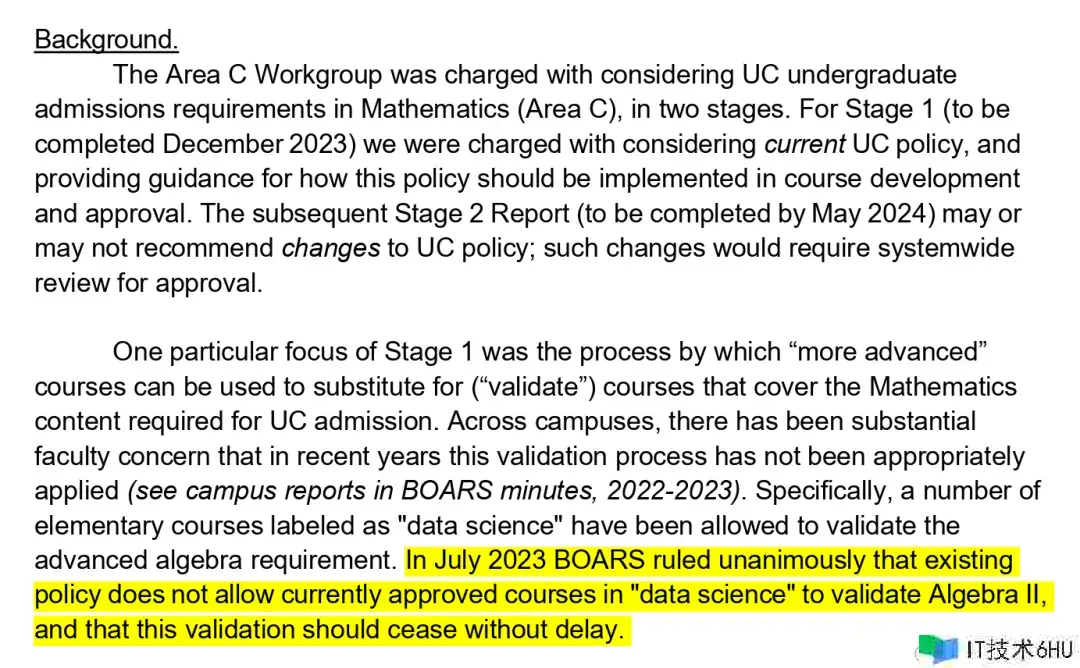 公开信中提到了加州大学澄清了高中生进入该大学的数学要求,这是怎么一回事呢?