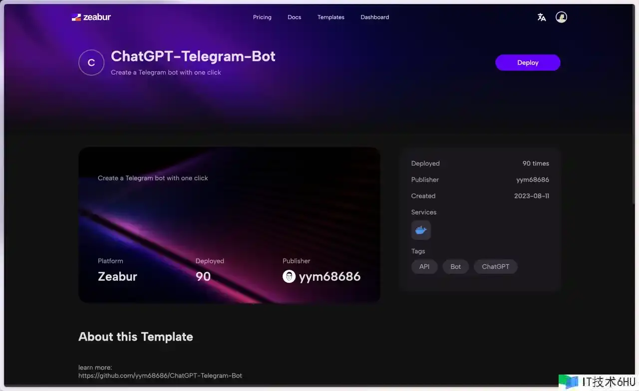 如果你只想拥有一个机器人,能让你在 Telegram 运用 ChatGPT 或者 Gemini ,你也能够直接布置 Zeabur 模板市场里的几个机器人,例如 Gemini-Telegram-Bot 或者 ChatGPT-Telegram-Bot ,点击布置后,Zeabur 会主动为你创建一个对应的库房,你只需求在布置时填入你的机器人令牌和 API key 就能够开端运用了