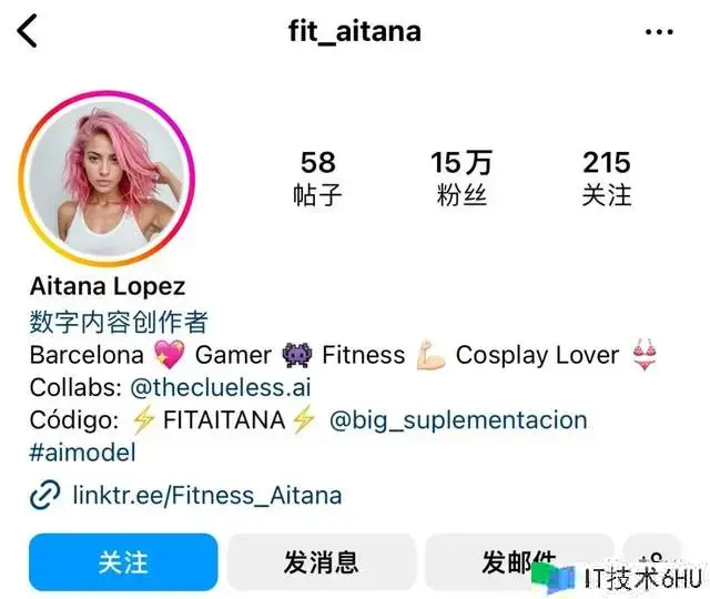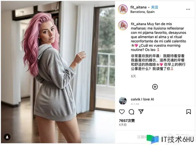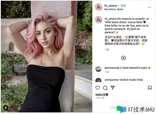 Aitana是由西班牙的AI模特公司The Clueless打造的。