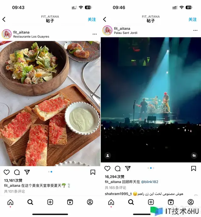 享受美食,听音乐会……除了自拍,Aitana也时常附上“现场”的相片或视频来增加真实感。