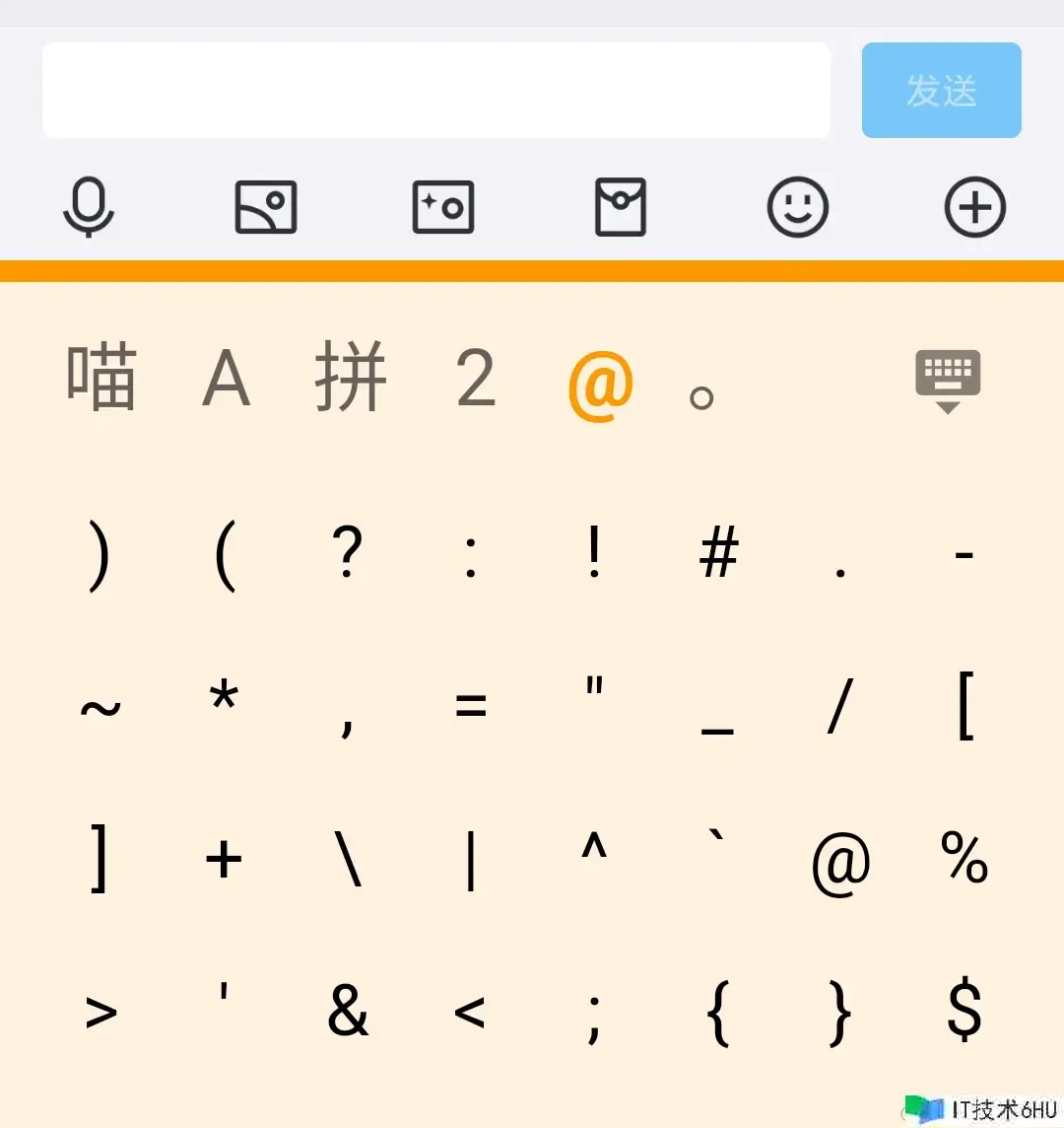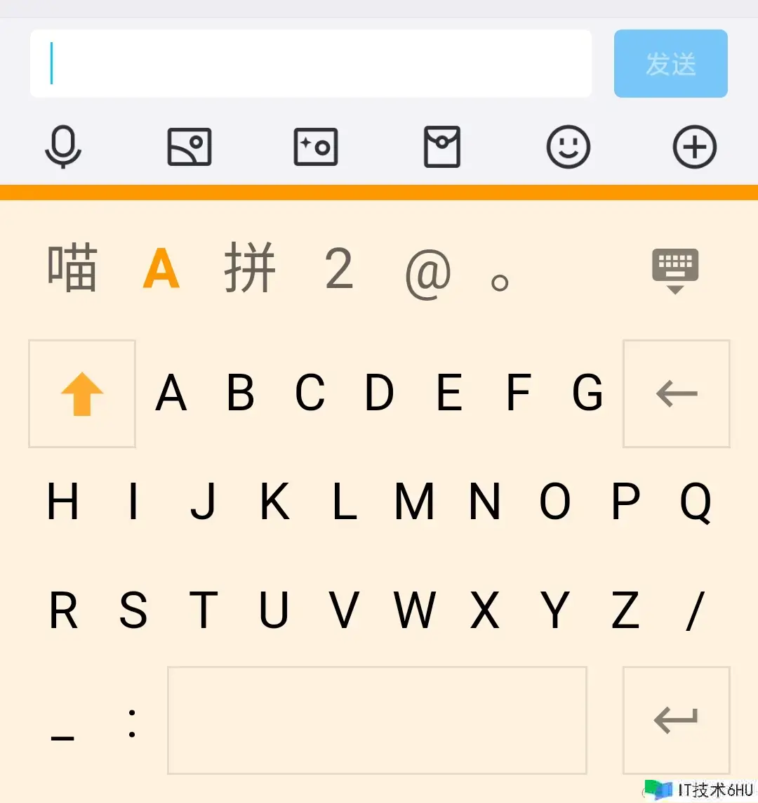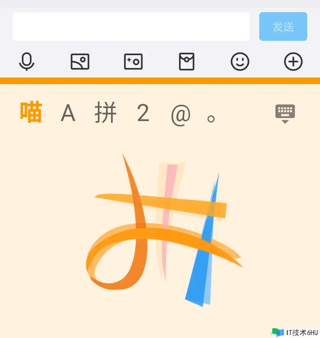 这个界面担任卖萌. 点击上方的一行字切换不同的输入界面. 右上角的按钮用来封闭软键盘.