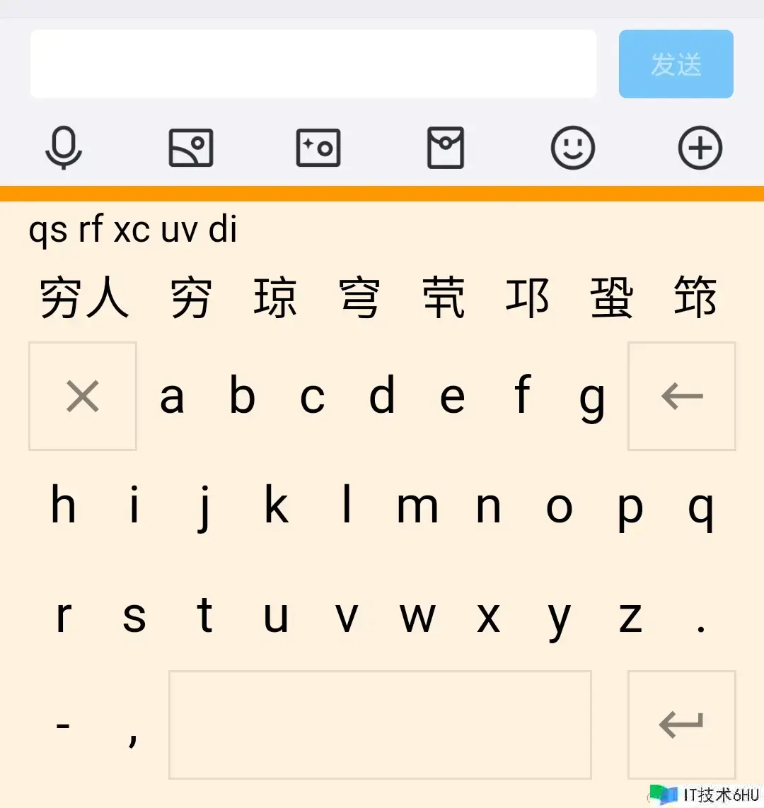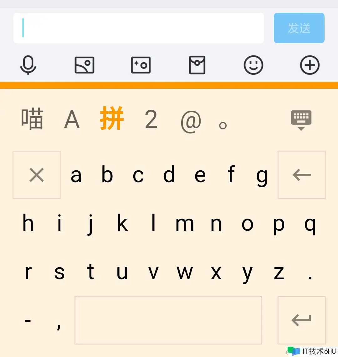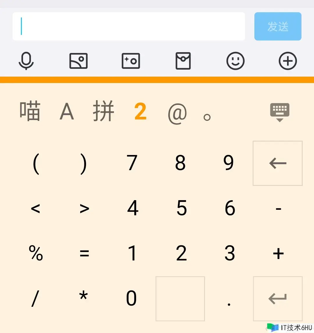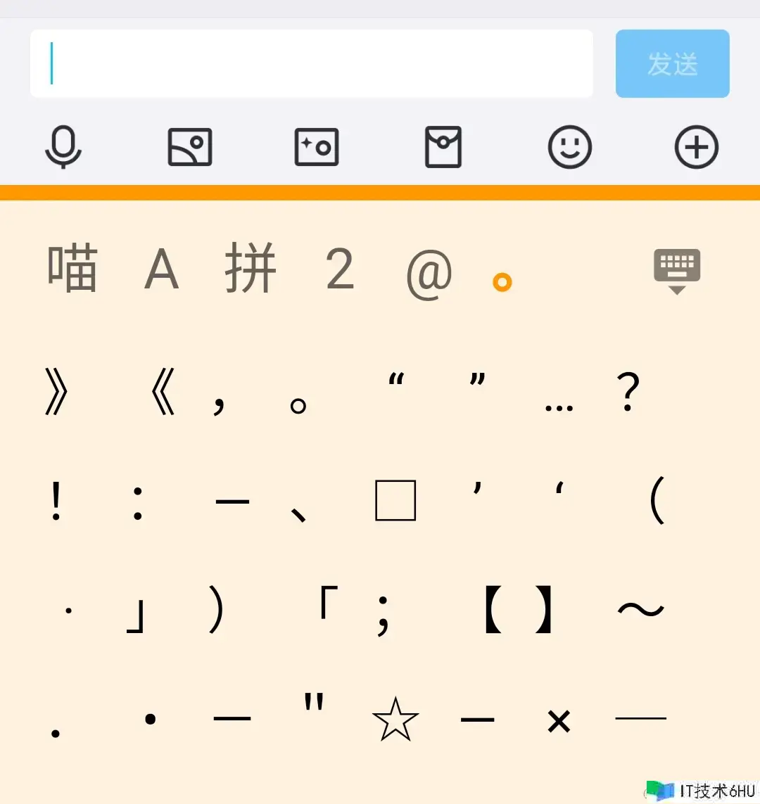 这个界面担任卖萌. 点击上方的一行字切换不同的输入界面. 右上角的按钮用来封闭软键盘.