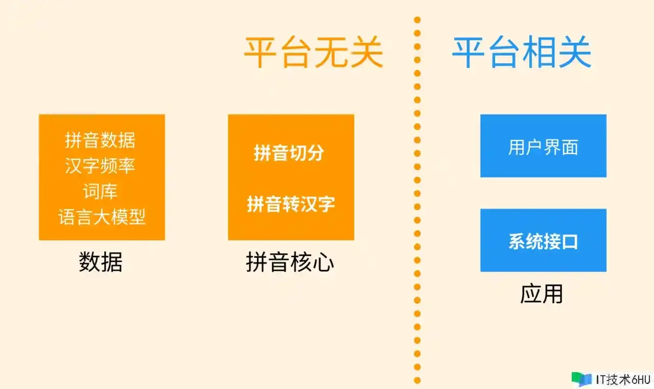 渠道无关的部分包含数据, 以及拼音中心. 在各个渠道上都是通用的.