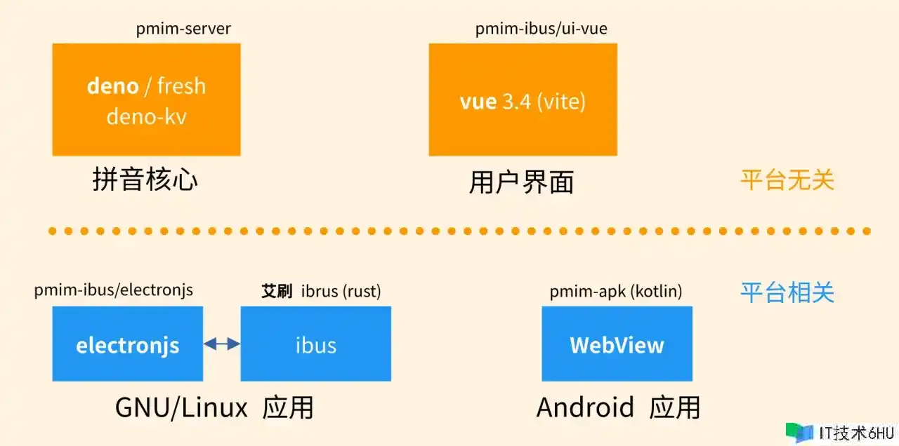 渠道相关的部分包含图形用户界面, 以及体系输入法接口. 最终需求一个适应相应渠道的运用, 来把这些东西装进去.