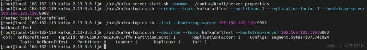 ./bin/kafka-topics.sh --describe --topic kafkaraftTest --bootstrap-server 192.168.182.110:9092