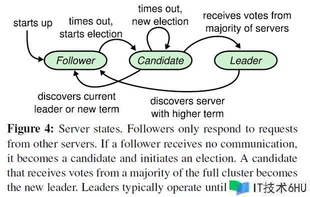 - Follower:被动节点,接纳并仿制 Leader 的日志条目,响应 Leader 的心跳和日志仿制恳求。