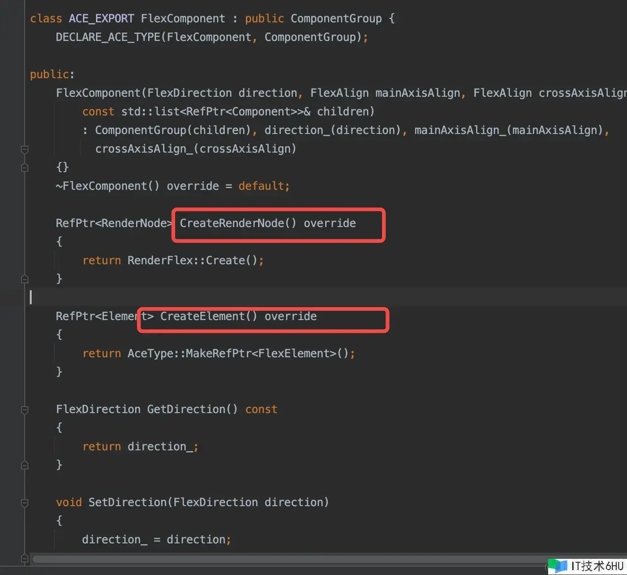 咱们拿FlexComponent举比方,全部可烘托UI的,都将完结来自Component的CreateElement与RenderComponent的CreateRenderNode方法
