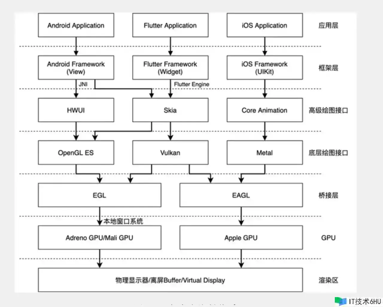 完结层:依托于详细图形标准完结,比方OpenGL/VulKan,这一层是真实的图形制作,比方咱们可以在Andorid直接经过OpenGL制作出形状。由于直接经过OpenGL制作会比较复杂,因而往往还会笼统出一层,比方Skia。