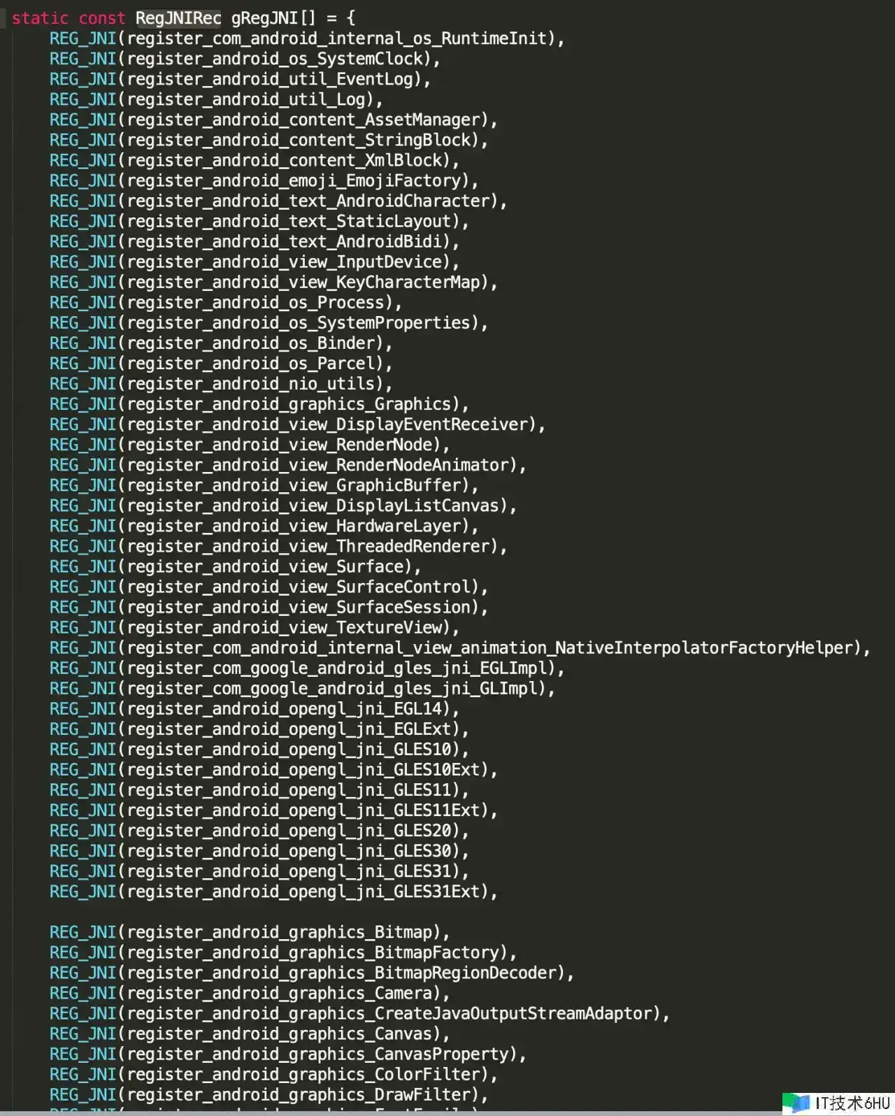 // 获取 gBinderMethods 注册 java 与 native 办法的映射联络;