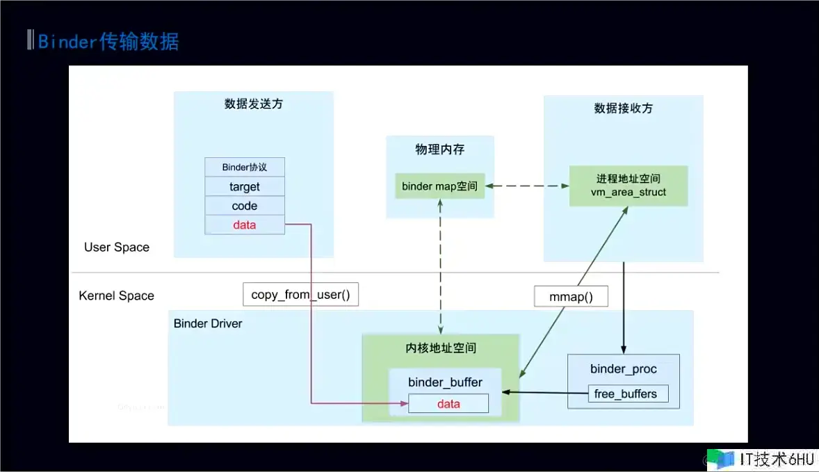 4. 同享内存:数据无需仿制;可是完结与操控较为复杂,需求自行处理并发同步等问题;依靠上层协议(不靠谱),拜访接入点敞开不安全(依靠上层协议 说的是身份辨认的时分,当时 app 调用服务的时分,需求传递身份标识进行身份辨认,当时 app 将自己的 pid 告知服务,那么就能够随意的产出一个 pid 告知服务,不靠谱)拜访接入点敞开,就相似公共汽车,谁都能够上车相同,不安全;