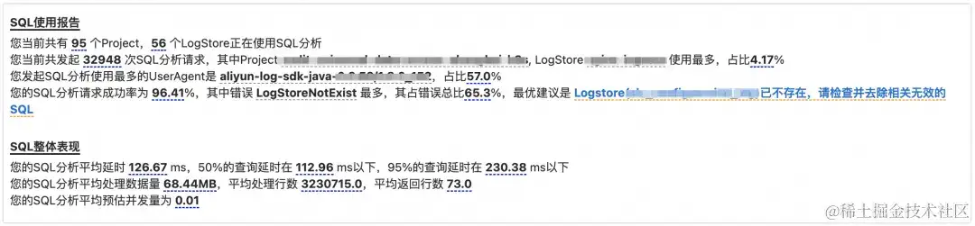 为了提高用户 SLS SQL 的运用体验,咱们供给了用户级 SQL 质量监控功用,期望能够协助用户直观、清晰地了解本身运用 SQL 的状况。