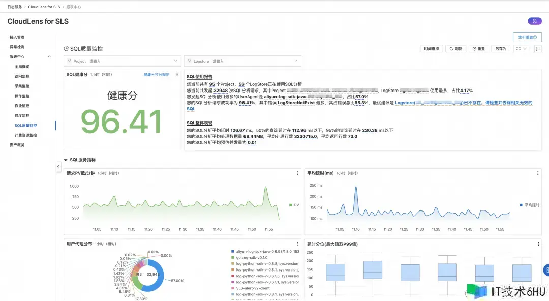 在 SLS 中,用户能够经过 SQL 对日志数据(结构化、半结构化、无结构化)进行查询和剖析。随着用户对 SQL 运用程度的不断加深,越来越多的用户期望了解自己运用 SQL 剖析时的服务反应(如恳求量、成功率、数据量等等),以便对数据和剖析行为进行精细办理或优化管理。