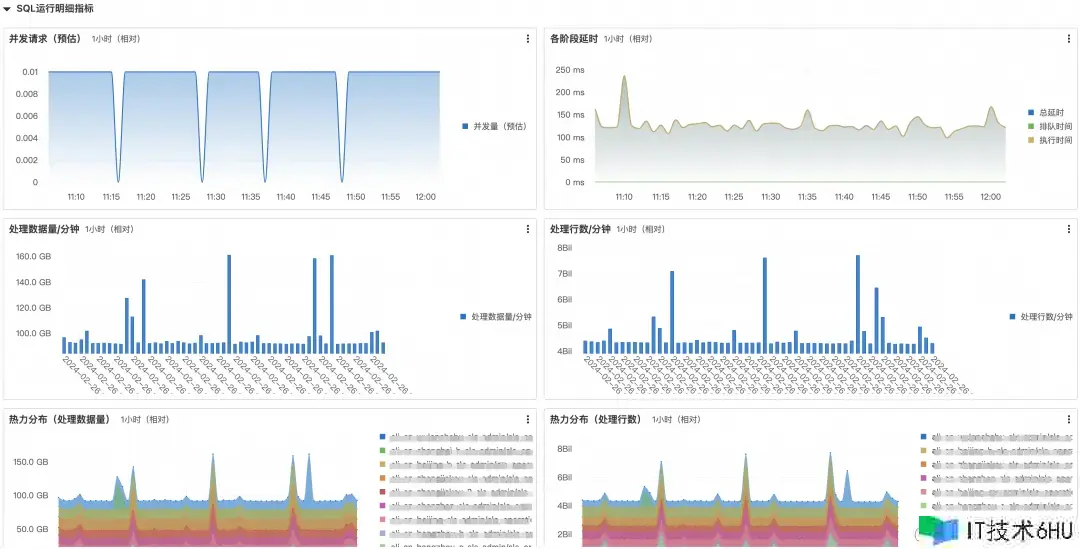 经过「SQL 运转明细目标」,用户能够更进一步地了解当时 SQL 履行状况,包含并发恳求(预估)、各阶段平均延时、每分钟的处理数据量和处理行数,以及细化到 Logstore 的 SQL 热力散布状况等等。