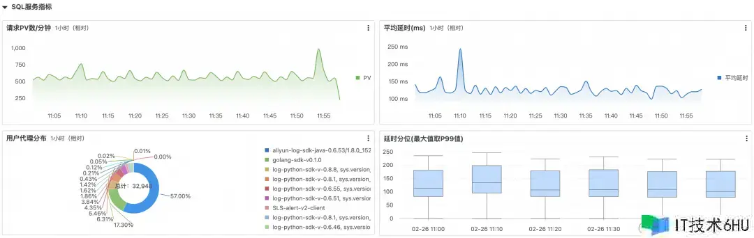 经过「SQL 服务目标」,用户能够了解自己运用 SQL 时更详细的服务质量,包含每分钟的恳求 PV 数、平均延时、恳求署理散布以及延时四分位的散布水平。