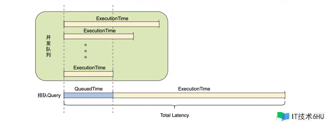 其实,了解了上面的并发控制模型,就不难理解这一点:当一条 SQL 提交时,如果并发行列满,该 SQL 将在排队行列中等候,直到并发行列中最短的一条 SQL 履行完才干腾出空位来,这个时刻距离称为“QueuedTime(排队时刻)”,所以,当呈现排队时,SQL 端到端的总延时或许会增高,这其间包含了行列中等候在途 Query 完结的排队时刻。