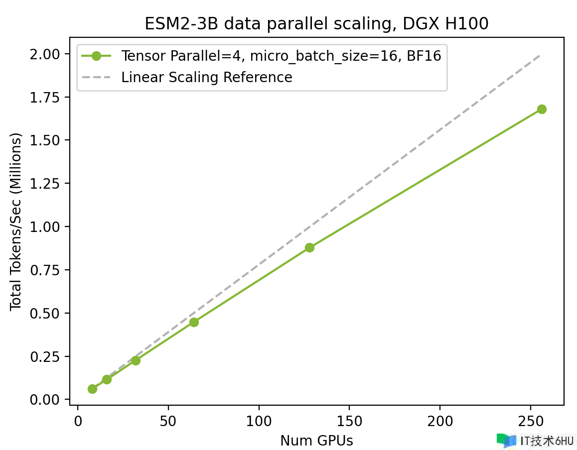 这为在更短的时间内练习更大的模型供给了时机。例如,运用 BioNeMo 结构和 512 H100 GPU,可以在 18.6 天内运用 1T 令牌练习包括 200 亿个参数的 ESM2 模型。