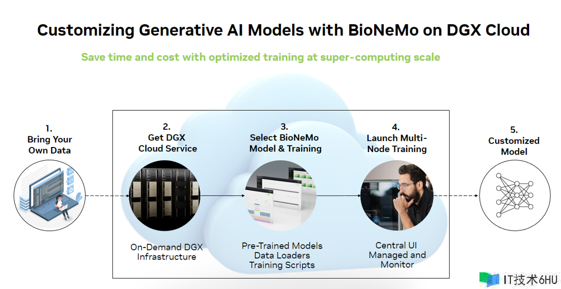 BioNeMo 平台包括托管服务、API 端点和练习结构,可简化、加快和扩展用于药物研制的生成式 AI.BioNeMo 可以经过大规模端到端加快预练习或微调先进的模型。它可作为 NVIDIA DGX 云上的完全托管服务和 NVIDIA Base Command 平台,也可作为可下载的结构,用于布置本地根底架构和各种云平台。