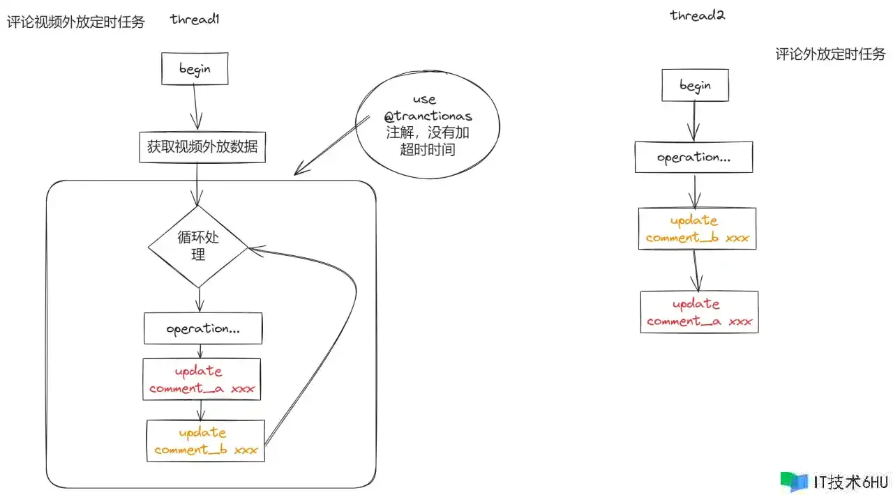 1. thread1守时使命在获取需求外放的视频数据后,使用一个非常大的业务,并且在加@Transactional没有指定timeout